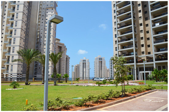 Accordingly, the guidelines advocate for compact development, high accessibility and connectivity, mixed land uses, and human interaction among diverse populations [30]. In this respect, they do not differ from parallel conceptions of “good urbanism” in Western Europe [42,43]. With regard to neighborhood design, the Ministry of Housing maintains that a sustainable neighborhood is one that retains its value over time: it does not deteriorate, is not abandoned, and is not expected to undergo massive demolition and reconstruction [30]. Whereas the ministry’s guidelines make no specific reference to planning high-rise neighborhoods for diverse populations, several guidelines analyzed below provide insights into its position on that matter.