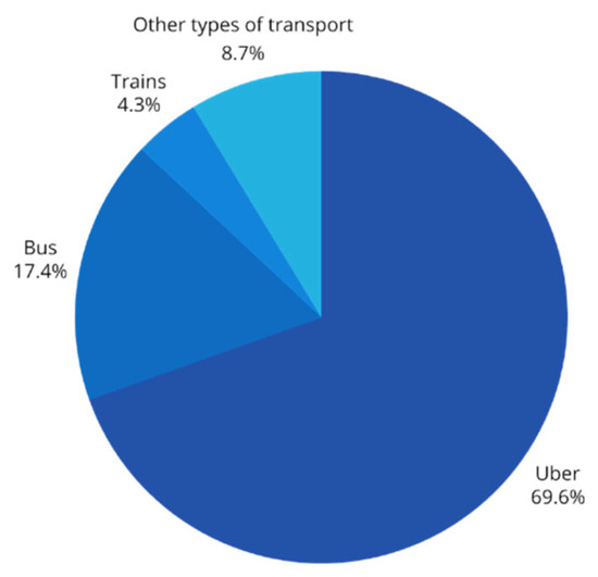 Tourist mobility relies heavily on ride-sharing services (60.6%) and buses (17.4%), with limited use of trains and other public transport, suggesting gaps in the public transport network (Figure 3). Accommodation demand peaks in summer months (June–August), underlining strong seasonality. The initial survey of the study area reveals that more than half of the identified attractors (54%) correspond to beaches. This confirms the predominance of seaside tourism over other forms of tourism, such as nature-based or inland attractions. The spatial distribution of POIs classified according to the STESY taxonomy highlights a strong concentration along the coastline, especially near beaches, forming a continuous line of tourism resources. In contrast, the inner of the island shows a more fragmented and uneven presence of points of interest, suggesting a weaker integration of inland areas within the overall tourism system.