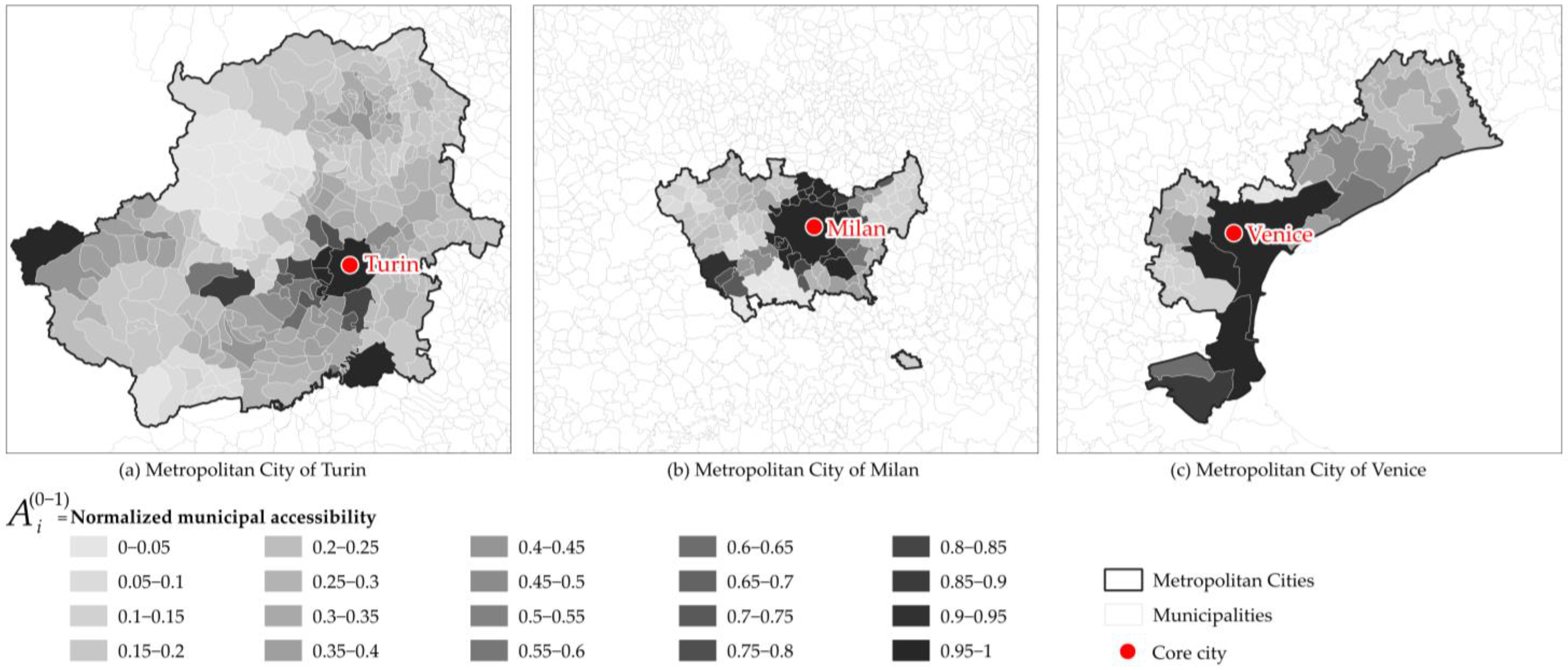 APA StyleVitulano, V., Pantaloni, G. G., Bocca, A., & Bruzzone, F. (2025). Accessibility and Spatial Conditions in Northern Italian Metropolitan Areas: Considerations for Governance After Ten Years of Metropolitan Cities. Urban Science, 9(12), 526. https://doi.org/10.3390/urbansci9120526