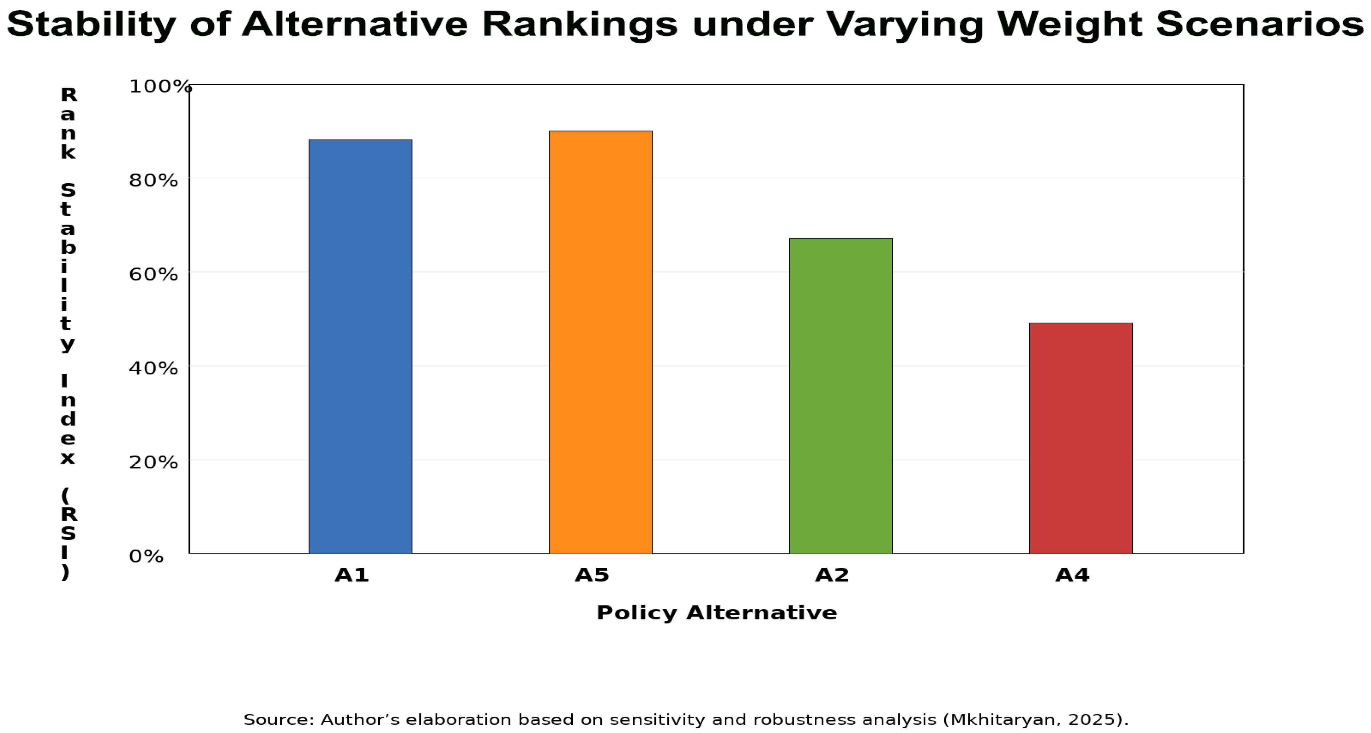 Figure 3, this figure displays the rank stability index (RSI) for each policy alternative across multiple weighting configurations.