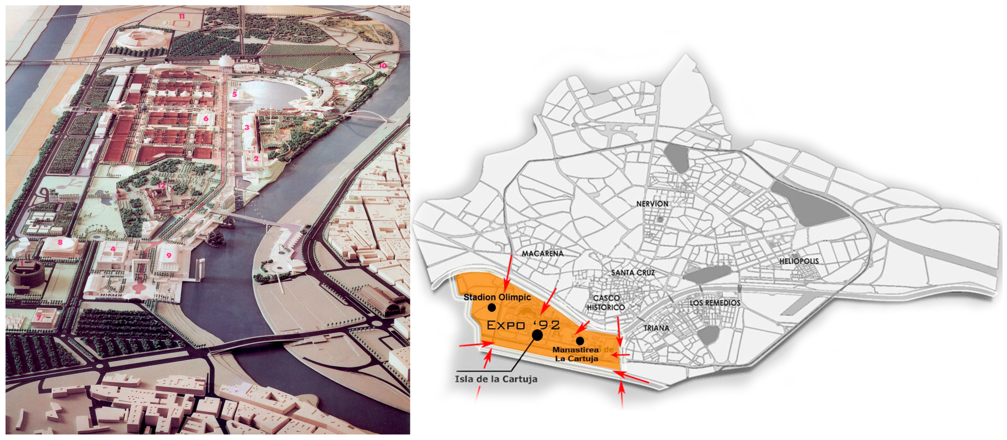 This study focuses on the city of Seville, one of the few cities worldwide that hosted two major international exhibitions—the 1929 Ibero-American Exposition and the 1992 Universal Exposition (Expo ’92).