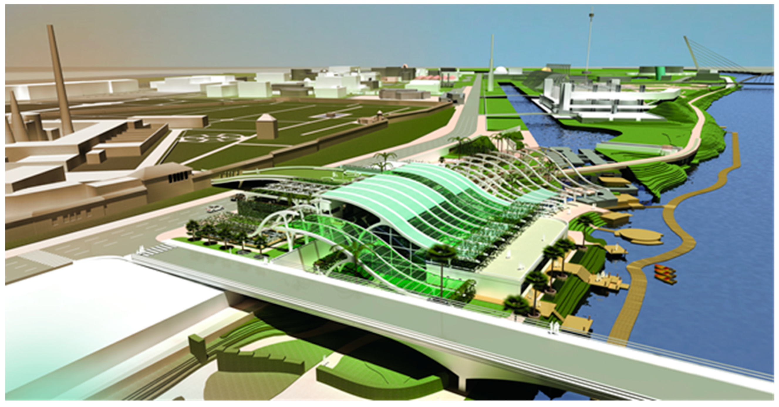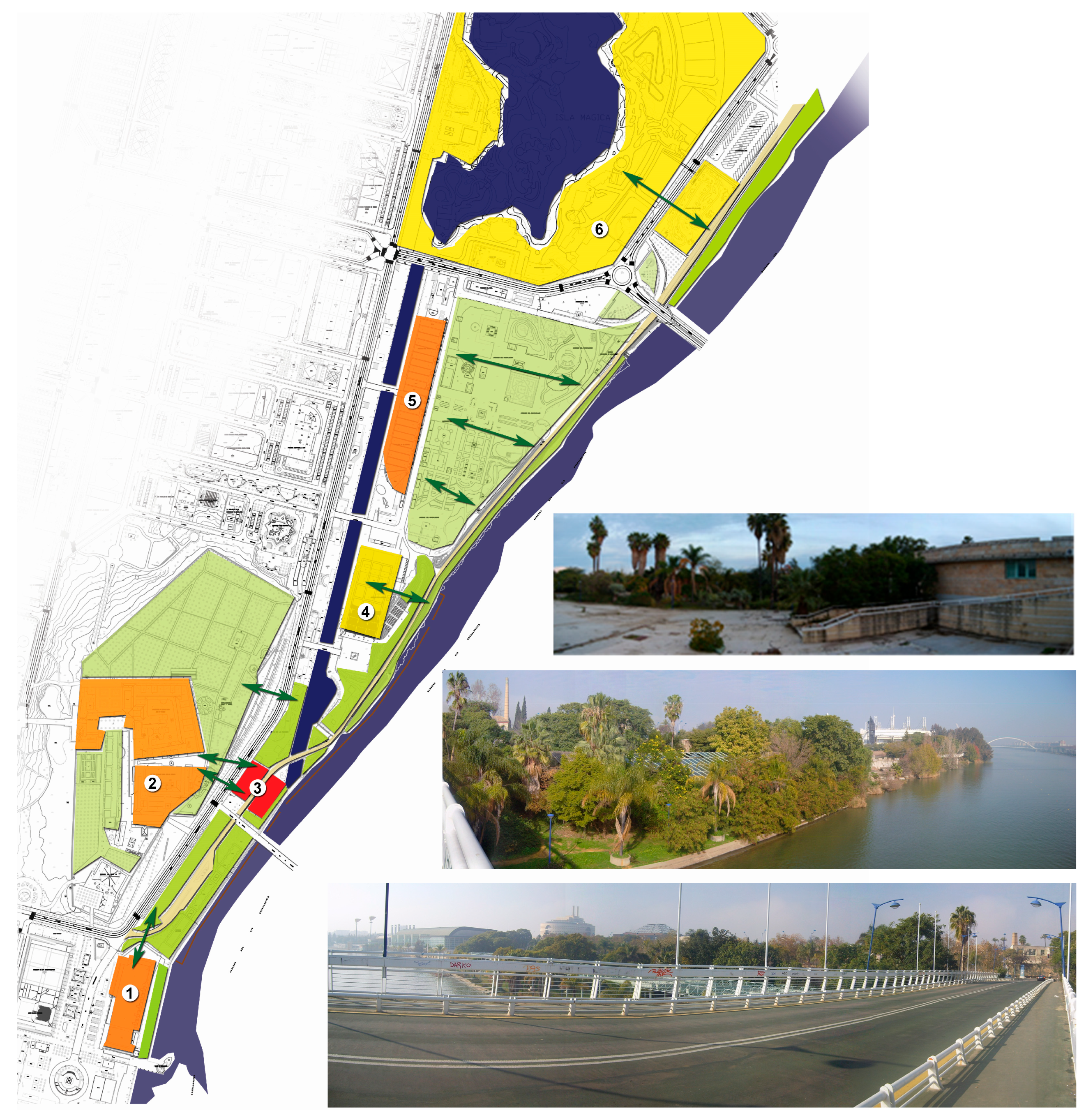 Naturalia XXI, which proposes opening the riverbank to the public, with pedestrian and bicycle paths, was a very important first step, namely, creating the city–Cartuja Island connection (existing proposal).