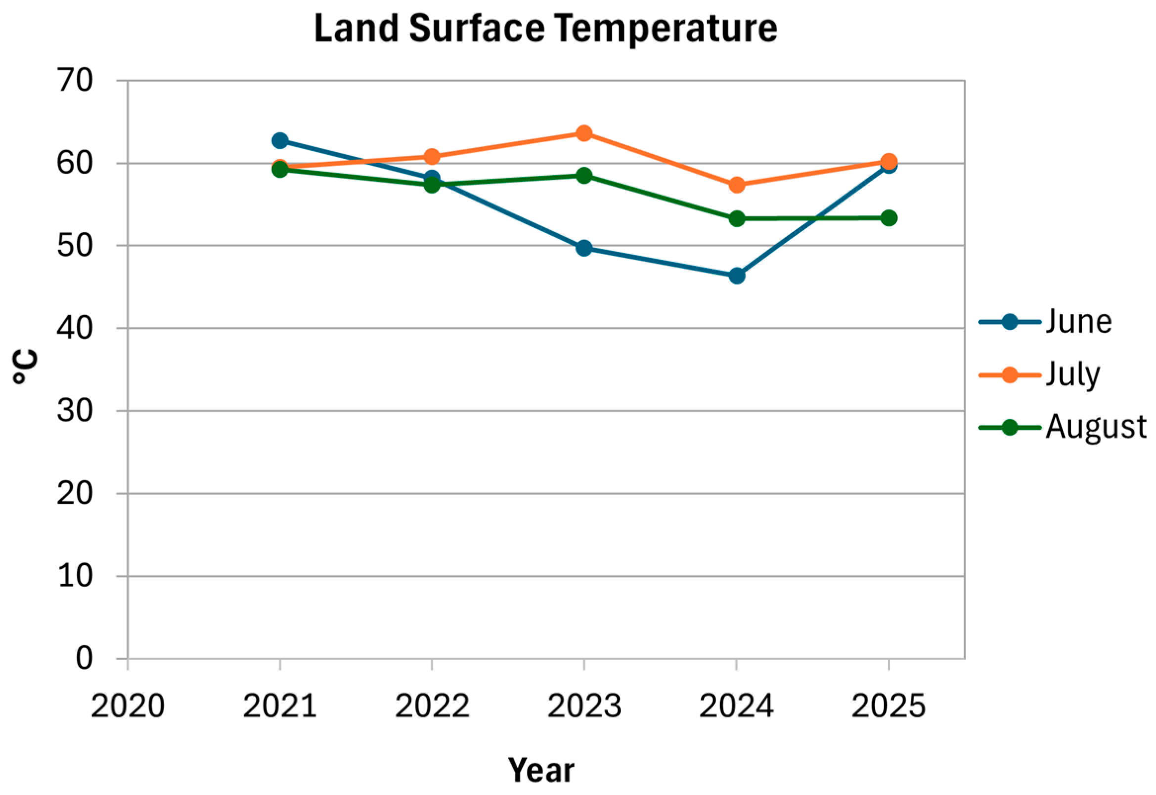 - Google Earth Engine. Available online: https://developers.google.com/earth-engine/datasets/catalog/LANDSAT_LC08_C02_T1_L2 (accessed on 10 September 2025).
