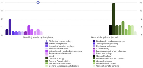 The third literature review includes three literature searches and provides verification and contextualisation of refined wilding using functional biodiversity as a search term for urban landscapes. The literature review is step seven of the classic GTM for relevance and contextualising of refined wilding and functional biodiversity for an urban landscape as a positive outcome. Three searches are conducted, and the frequency of terms and similarity by intention to be verified are understood as indicative of how refined wilding substantiates functional biodiversity for an urban landscape. Thus, how appropriate functional biodiversity is for an urban landscape, and if functional biodiversity is an already used term. The conceptual framing for search term results further assists in verifying these terms for the urban landscape and uses ESHR as well. ESHR provides in-depth substantiating. These searches are conducted using Google Scholar as an example of used terms and concepts for the urban landscape. The search terms are selected to determine how commonly specific terms and words are found in the published literature to verify the relevance and originality of refined wilding and functional biodiversity for an urban landscape. The first search is ‘functional biodiversity and UGSs’ with 159,000 search results and 960 results reviewed. A total of 110 results were listed as title and journal, and the next 850 results were reviewed for significance and relevance by titles, summaries, or abstracts according to search terms. The second search is ‘functional biodiversity and cities’, with 159,000 search results and 960 results reviewed. The third search is ‘Design, functional biodiversity, urban’, with specificity search results by terms included referred to. The journals by discipline are analysed for interdisciplinarity in urban landscape studies and practice. The different UGS types found in search results are also identified and listed as an indication of being frequently studied or occurring. Most of the search results inform or further literature review I and II.