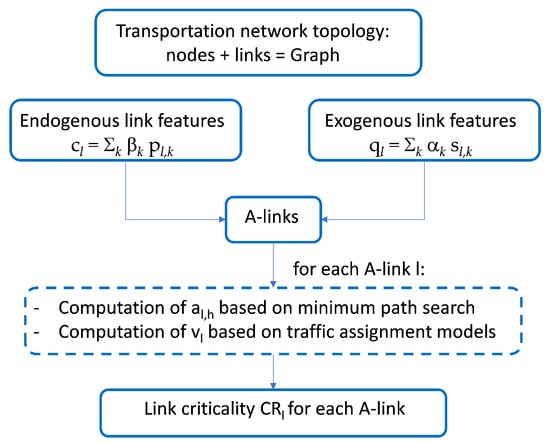 Note that, apart from the introduction of and , steps 1–3 are usually adopted for modeling transportation systems (more detail can be found in [36]). To conclude this section, Figure 2 summarizes the main steps of the proposed approach.