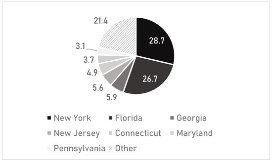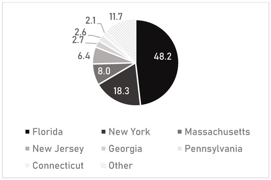 Almost half of all Haitians live in Florida, which is unsurprising. This state’s coast is located closer to Haiti than other U.S. territories, and political instability in the country has repeatedly led to large-scale waves of Haitian refugee migration [14]. Later, the diaspora grew in the logic of chain migration. It should be noted that other states with the highest numbers of Haitian populations (New York, Massachusetts, New Jersey, Georgia, Pennsylvania, and Connecticut) also have access to the Atlantic Ocean.