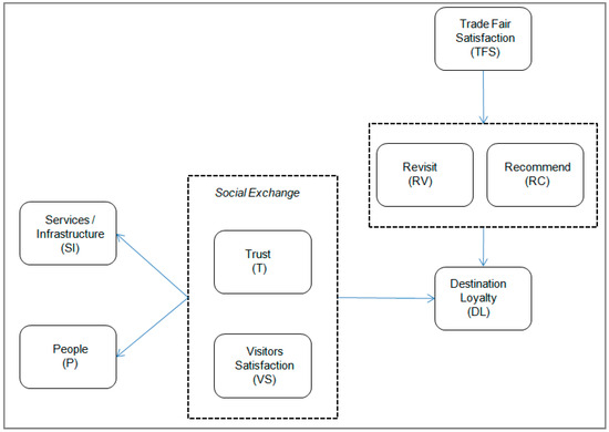 In the M.I.C.E. sector, and specifically within trade fairs, the application of S.E.T. helps explain how participants form perceptions about the host destination. These perceptions are shaped by a combination of business interactions at the event, the quality of infrastructure and services, and social exchanges with residents and event organizers. Adongo et al. [21] highlight the dynamics of “give and take” in festival settings, where positive exchanges between stakeholders contribute to stronger loyalty intentions. When exhibitors perceive the exchanges to be positive, they are more likely to develop destination loyalty, which encompasses both their intention to revisit the destination and to recommend it to others [7,8].