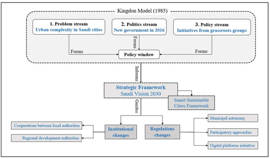 Aligning Kingdon’s model with strategic vision for urban development in Saudi Arabia. Source: Adapted from Kingdon’s model [61].