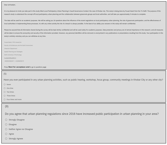 Informed consent was obtained from all subjects involved in this study. The consent form for this paper was developed by Fouad Alasiri from TU Delft. It invites 20 urban planners to participate in an interview lasting approximately 45 min, covering topics such as urban planning experiences post-2016 government reforms, policy impacts on participatory urban planning, and future challenges and tools in the field. The form emphasizes confidentiality, stating that personal data will be anonymized in any research outputs. It states that participation is voluntary, and the interview will be recorded for accuracy, with the option to withdraw at any time without providing a reason.