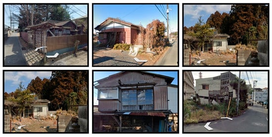 - Current Status and Issues of Vacant House Policy and Direction of Study. Available online: https://www.mlit.go.jp/policy/shingikai/content/001518774.pdf (accessed on 8 January 2025).