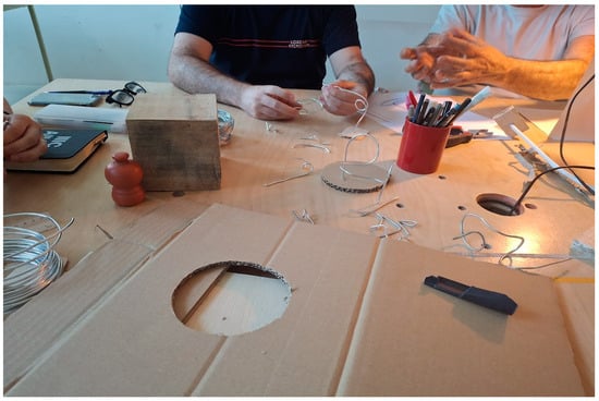 In this project, the design development followed the classical steps of the Design Thinking “Double Diamond” methodology (Figure 3). The Double Diamond was introduced by the Design Council [37], and it is widely used as a reference design method in a variety of contexts (e.g., services, analogue or digital products, public policies). The first phases, traditionally called Discover and Define, involve the integration of a state-of-the-art assessment with the accumulated knowledge and experience of the research team [38]. Typically, the material collected during the Discover phase will inform the definition of a descriptive brief of the project (the Define phase), which may include external clients’ or stakeholders’ requirements alongside external constraints or self-imposed limitations [39]. In this design-driven approach, the conjectural nature of design as a discipline is a key premise, and the designers’ own accumulated experience [38] and initial idea generators (the primary generators; see [40]) become integral to the workflow.