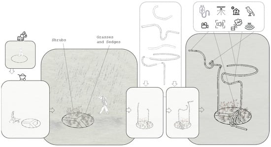 - More-than-human components [46] are addressed via green infrastructure that supports urban biodiversity and ecological health. Rain gardens attract various species such as bugs, butterflies, birds, and bees, creating an urban solution to the declining population of beneficial species in human environments due to habitat loss.