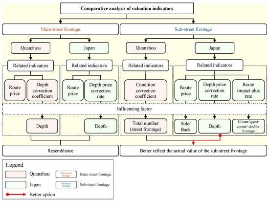 According to the above analysis of the current valuation indicators in Quanzhou and Japan, it can be found that the indicators related to sub-street frontage are quite different (as shown in Figure 3).
