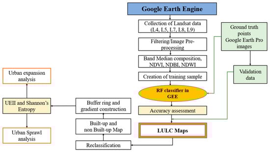 From the perspective of LULC, the expansion of cities transforms natural habitats into populated, industrial areas causing habitat destruction and fragmentation that negatively impacts forests, croplands, wetlands, and grasslands by splitting these ecosystems into small and isolated patches [8,9]. For efficient land management, monitoring and assessing the spatial and temporal dynamics of urban land use are essential to comprehending the impacts of urban growth, developing effective plans for sustainable urban development, and achieving UN Sustainable Development Goal 11, which calls for the establishment of inclusive and resilient societies by 2030. This involves diverse approaches, such as advanced remote sensing, geographic information systems (GIS), complex computer models, and community-driven data collection. Remote sensing utilizes satellite imagery to provide high-resolution spatial and temporal data for accurately tracking land use and urban growth over large areas [10]. Traditional methods relying on visual and computer-aided interpretation often yield coarse results in heterogeneous landscapes [11]. Recent advancements in geospatial technology, particularly cloud-based platforms like Google Earth Engine (GEE), enable extensive analysis of urban growth patterns and large-scale LULC mapping across the continent.
