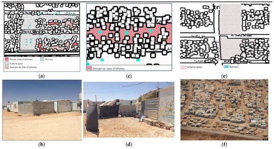 Zaatari Camp’s evolution from a planned grid to an organic settlement reflects the agency and resilience of its inhabitants. Initially, the grid pattern was implemented to ensure security, prevent the dominance of influential groups, and facilitate the efficient distribution of aid [9,49]. However, refugees quickly began to modify their environments, converting public spaces into private extensions of their shelters and creating zones of influence that reflected their socio-cultural values and territorial behaviors. These alterations were driven by a combination of physical, social, and cultural factors, as well as refugees’ prior experiences with urban and rural settlement patterns in Syria [2,51].