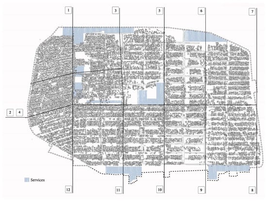 The camp’s initial design followed a rigid grid pattern, intended to facilitate efficient service delivery, security, and management. However, the rapid and chaotic arrival of refugees overwhelmed the planned layout, particularly in the older districts (districts one, two, three, four, and twelve), which were characterized by informal and ad-hoc settlements; see Figure 3.