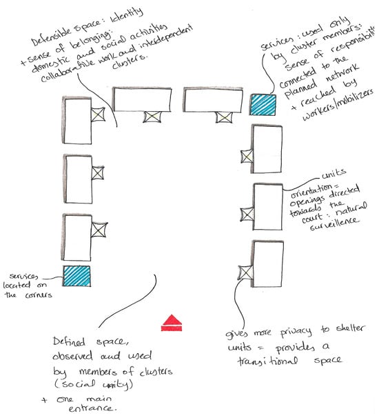 Ref. [30] defensible space theory is reflected in Zaatari’s clan-controlled cul-de-sacs and semi-private zones, where refugees leverage spatial boundaries to enhance safety and communal monitoring. Zaatari’s morphology synthesizes defensible space theory [22,31] and Arab–Islamic urbanism [12,32], creating hierarchical zones balancing safety and cultural identity:
