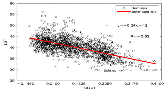 Linear regression between LST and NDVI.