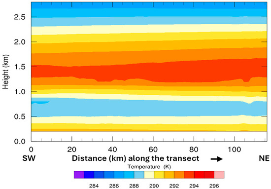 The impact of the UHI effect on the vertical temperature structure has also been discussed by [29] over the large region of Beijing, revealing changes in temperature inversion layers and in the UHI circulation. The findings underscore the UHI effect’s role in modifying local atmospheric conditions. A similar and more pronounced UHI effect on temperature inversion and its implications for air quality and weather patterns has also been suggested by [18]. In our study area, the proximity to the ocean creates a strong coupling between the urban heat vertical transfer and the sea breeze. While both phenomena are local in scales, their interaction affects the lower troposphere stability and may alter large scale weather patterns (Figure 11).