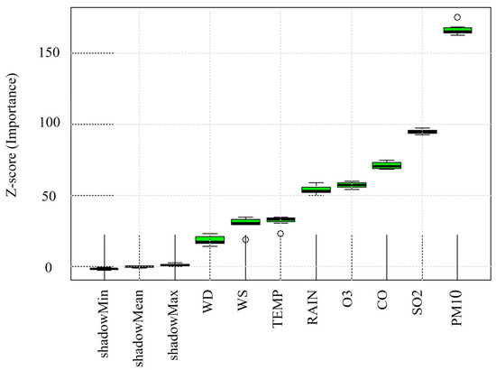 The determined features’ importance according to the Boruta-XGBoost method.