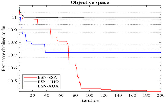 Convergence diagram of three metaheuristic algorithms—SSA, HHO, and AOA.