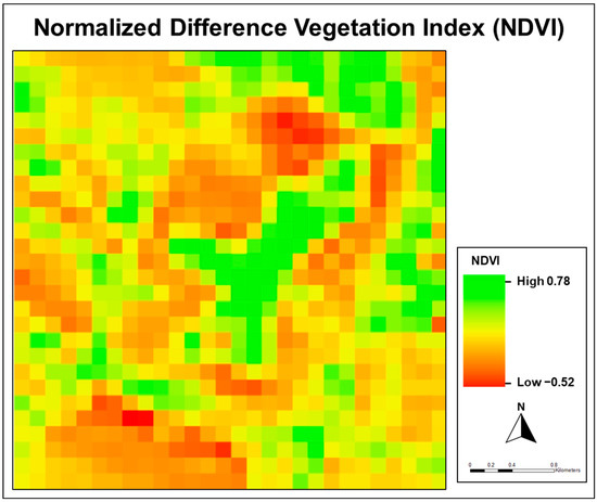 The study site was located in the middle of the Forestias Project, a mixed-usage zone consisting of residential areas covering over 636,800 m2 that includes hospitals, hotels, shopping centers, industrial houses, and condos. The surroundings can be best described applying the land use and land cover map utilizing the Normalized Different Vegetation Index (NDVI) in describing the areas of forest and built-up areas (Figure 1). Within the Forestias Project, a central area of 6000 m2 was designated as the natural zone of the Deep Forest, in which fast-growing vegetation was planted following the methodology suggested by Miyawaki [13].