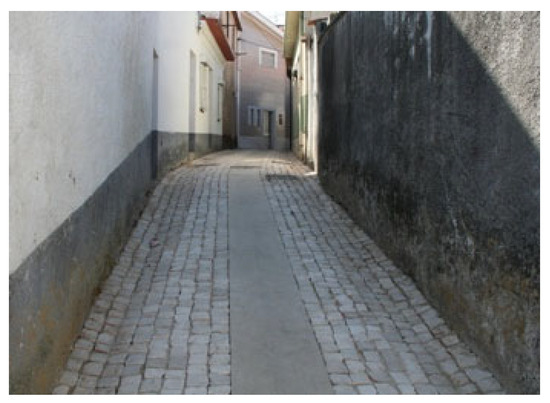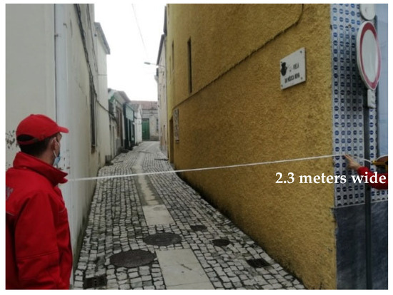 Urban morphology characterised by narrow streets is very common in old urban centres, making access difficult, for example, for fire trucks. Therefore, any intervention by firefighters takes longer than desired, compromising the protection of people and property. Figure 3 and Figure 4 show examples of narrow streets typical in the historical centre of Ílhavo.