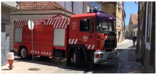 Even without parking, narrow streets and tight alleys make it difficult for emergency vehicles to pass, thus increasing the time spent on manoeuvres, which causes delays in arriving at the accident scene and, consequently, delays in providing assistance and fighting fires (Figure 11). Figure 12 and Figure 13 show some vehicles commonly used to fight urban fires.