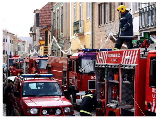 In some countries with centuries-old heritage, such as Portugal, urban rehabilitation interventions in historical centres have, in many cases, conditioned the intervention of civil protection agents; for example, limiting the mobility of firefighters and the capacity for intervention [4,5,6]. Bibliographic research on this issue revealed that the dissemination of knowledge about possible solutions to make heritage maintenance compatible with civil protection requirements is relatively limited, indicating that the number of studies in this area is small or that the specificities of each specific situation recommend a case-by-case analysis [7,8,9].