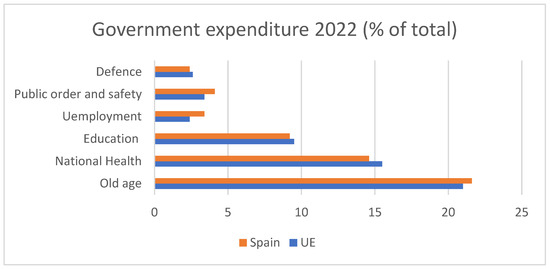 - Eurostat. Government Expenditure by Function. 29 February 2024. Available online: https://ec.europa.eu/eurostat/cache/visualisations/economy/government-expenditure/ (accessed on 11 May 2025).