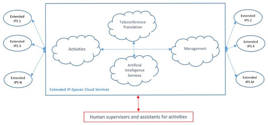 As illustrated in Figure 7, the high-level architecture of this platform, referred to as HERMÓPOLIS, brings together multiple extended IP-Spaces through a cloud-based infrastructure. This architecture not only facilitates seamless communication between the spaces and the users but also supports the various activities designed to improve the physical, mental and social well-being of elderly individuals.