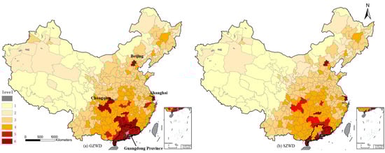 APA StyleJiang, H., Sun, H., Cao, Z., Wu, Z., Zhang, Q., & Zheng, Z. (2025). Quantifying Virtual Urban Commercial Linkages Using Spatial Phone Call Data—A Comparative Study Between Guangzhou and Shenzhen. Urban Science, 9(5), 176. https://doi.org/10.3390/urbansci9050176