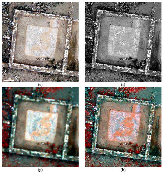 - Kaimaris, D.; Kandylas, A. Small Multispectral UAV Sensor and Its Image Fusion Capability in Cultural Heritage Applications. Heritage 2020, 3, 1046–1062. [Google Scholar] [CrossRef]