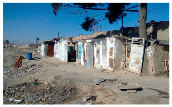 The worn-out urban fabric is typified by illegal or informal development (Figure 11), socio-economic problems, poor environmental quality, architectural vulnerability, and a severe shortage of public urban services. This fabric is mainly in evidence in the northern and western parts of Farahzad, on the outskirts of the old town and near the Farahzad river, and requires new rehabilitation and management policies. Many dwellings are in irregular shapes with primitive architecture and there is thus no one dwelling design that typifies the worn-out urban fabric.