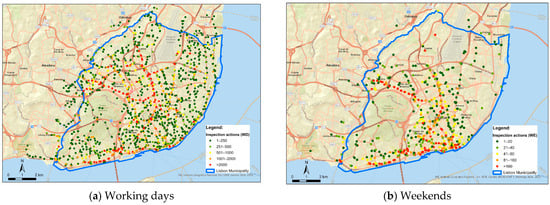 Inspection action during 2019 in the Carris network during (a) working days and (b) weekends.
