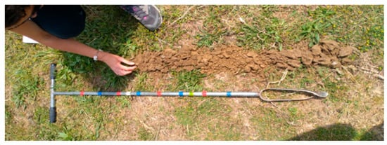 In Blagnac, pH, the cation exchange capacity, and the contents of major and trace elements were analyzed in various gardens to assess soil fertility, at the request of the gardeners. In accordance with the observations and knowledge of the gardeners, these analyses revealed an average agronomic state, with bioavailability of nutrients and a low CEC (related to the presence of silt and the low organic matter content); in particular, between 9 and 20 cmol+/kg. The pH is generally basic (8–8.7), which is in accordance with the knowledge that the source rock of the soil is carbonated. These results confirmed the gardeners’ impressions of quite low soil fertility and the interest in adding organic matter. No trace metal pollution was observed within the grounds of the gardens, in accordance with the site’s history. The gardens of Blagnac are in the floodplain of the Garonne. The pedogenesis of these soils is therefore influenced by the alteration of carbonate rock, as well as by fluvial inputs (silty alluvium) during successive floods. Two 60 cm-deep profiles were obtained in the field, the first to the west of the gardens and the second to the east, closer to the Garonne (Figure 4).