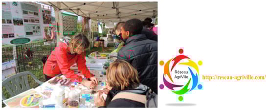 Of the gardeners questioned on the four sites, 95% claimed to support soil biodiversity. Increasing concern regarding living soil and global health has also been highlighted in a recent review of the literature on urban gardens [30]. After the soil observations and analyses, the gardeners concluded that: “in gardens the soil is directly visible, we can touch it, work it, plant our future food there, so we have an interest in taking care of it, in not contaminating it with plastics, chemicals or other pollution. I’m very happy when I see earthworms, different insects that live in my garden and seem to be in good shape! It’s reassuring for me” (Tournefeuille, G22). In the gardens of Balma, in addition to certain volunteers who share their knowledge of biodiversity, a professional photographer documents the fauna and flora in images. These photos are available on the website of the association of shared and family gardens of Garonne, as well as on the website https://balma.biodiv.fr/spip.php (6 January 2025), on which everyone can participate in this biodiversity census through sharing their observations. In Tournefeuille, in addition to the Bunipolis place, the diversity of plant and animal species and soil life are presented with educational panels, as well as an observation device for the galleries revealing biological activities within the first few centimeters underground. Furthermore, workshops on the characteristics and reactivity of the soil are frequently organized in the gardens in collaboration with scientists; for example, those from Réseau-Agriville (see Figure 5).