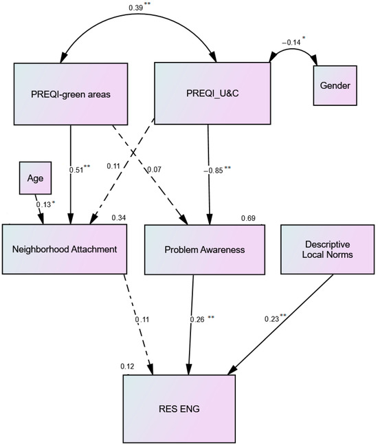 Passafaro, P.; Kosic, A.; Molinari, M.; Frisari, F.V. Predicting Individual Residential Engagement: Exploring the Role of Perceived Residential Environmental Quality, Descriptive Norms, Problem Awareness, and Place Attachment. Urban Sci. 2025, 9, 287. https://doi.org/10.3390/urbansci9080287