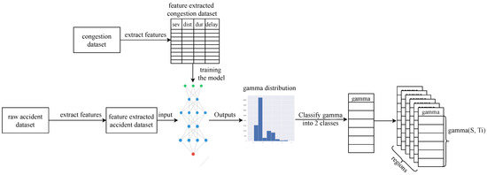 In this study, we propose a novel “accident impact” feature based on the delay caused by accidents. This is achieved by finding a function from the congestion dataset to estimate delay based on the accident dataset. In the following, a detailed explanation of the process can be found.
