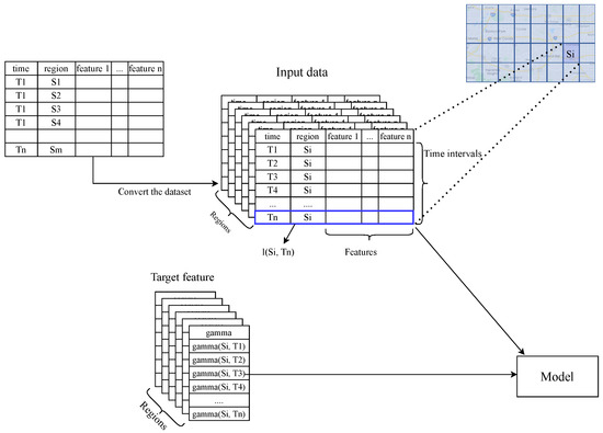 - Discretize data: After data cleaning, both accident and congestion data are first discretized in space and time. The temporal resolution is 2 h intervals and the spatial resolution is set to 5 km × 5 km squares in uniform grids.