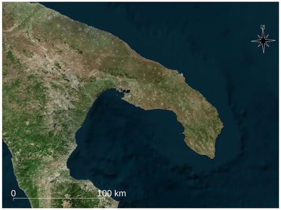 - OpenStreetMap. Available online: https://www.openstreetmap.org/#map=14/40.46210/17.25600 (accessed on 19 May 2025).