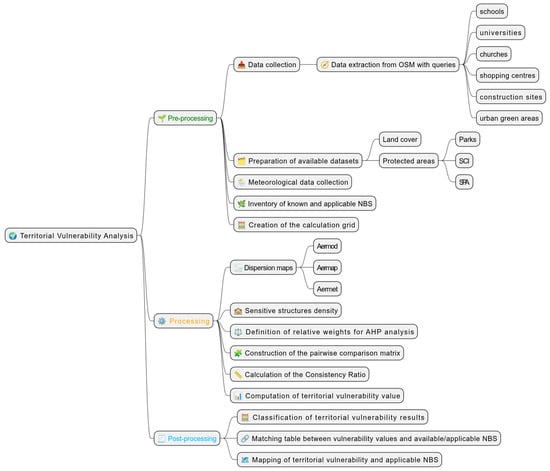 Below is the complete data processing workflow developed for the assessment of territorial vulnerability within the study area.