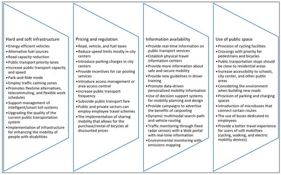 - Gallo, M.; Marinelli, M. Sustainable mobility: A review of possible actions and policies. Sustainability 2020, 12, 7499. [Google Scholar] [CrossRef]