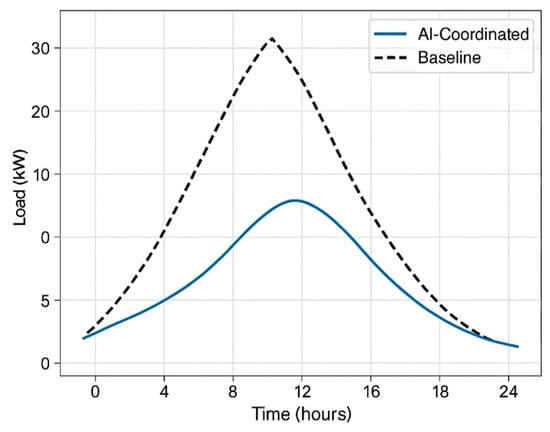 Load Profile Comparison between AI-Coordinated and Baseline Scenarios.
