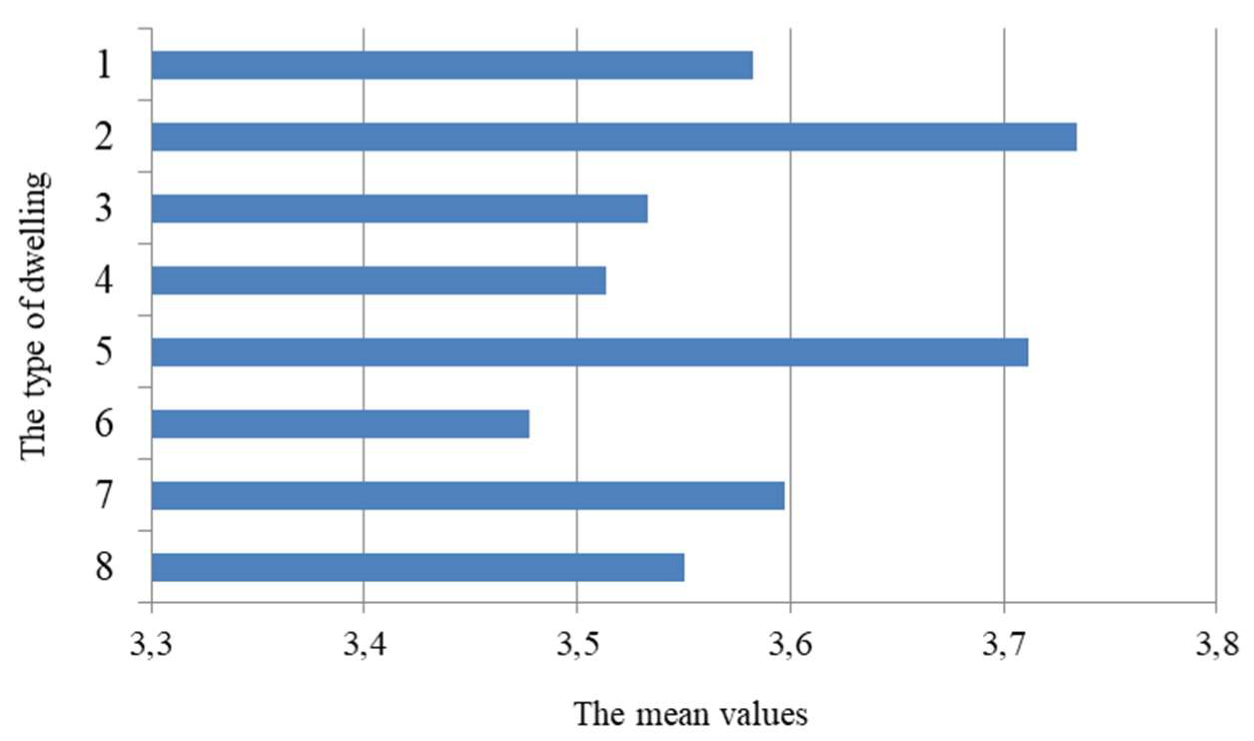 The level of confidence in the surroundings, that is, the extent to which individuals perceive their environment as secure and dependable, is most profoundly expressed by residents of dwellings of the types known as the “Leningradki”, the “Khrushchevkas”, and “Contemporary design buildings” (