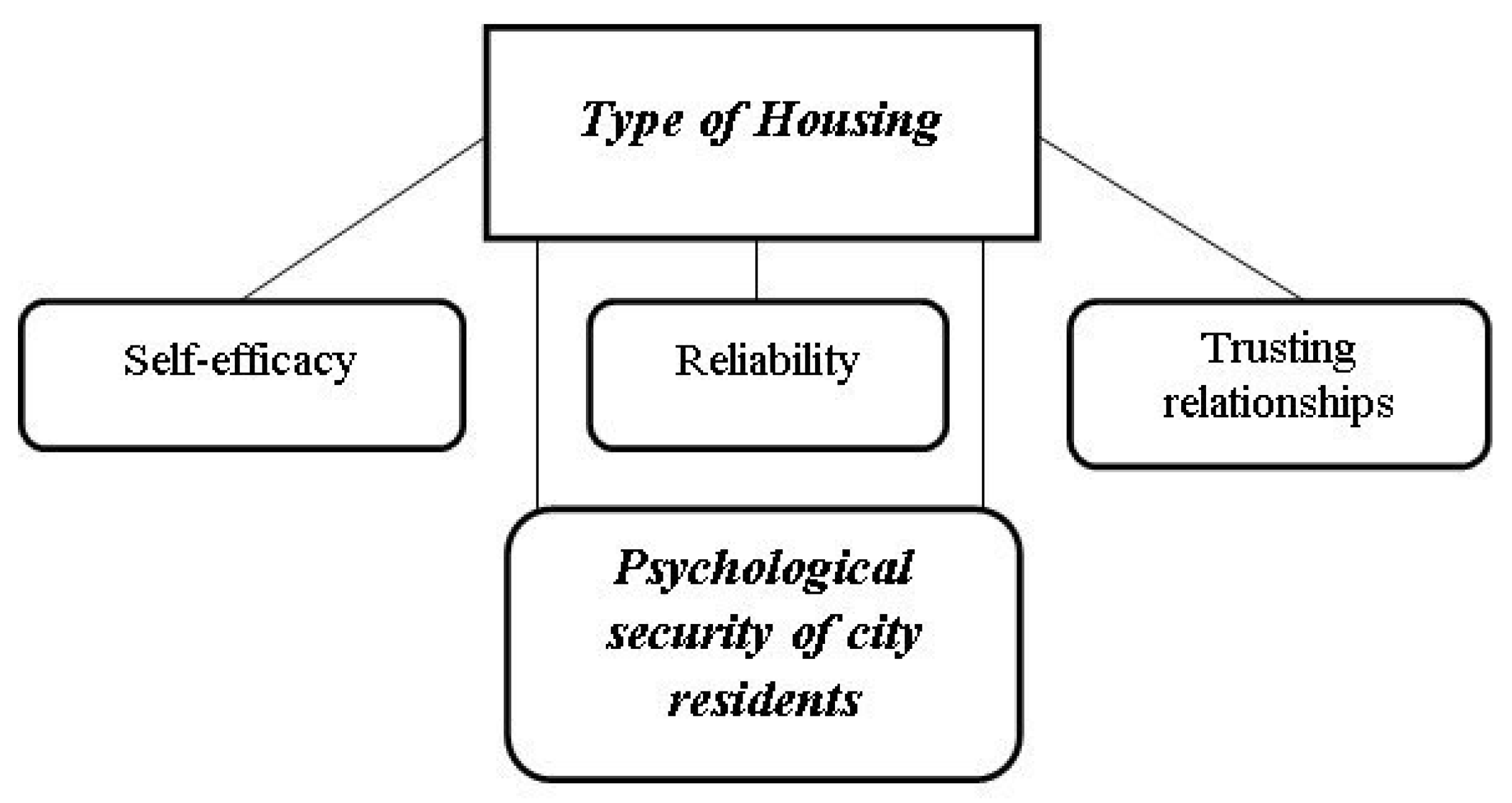 21] that the psychological security of urban dwellers as a distinct phenomenon has not been studied or quantified. Contemporary authors emphasize that an individual’s psychological security is intricately linked to their place of residence, which serves as a critical component of their surroundings [