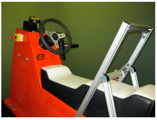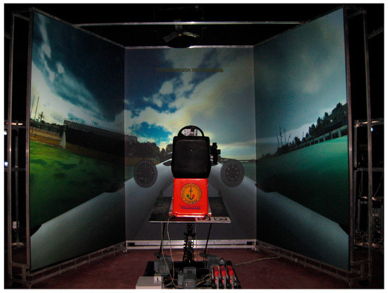 A great deal of vehicle simulators, with different setups, for many different vehicle types have been proposed: planes [9,10,11,12], helicopters [13,14,15], cars [16,17,18], motorcycles [19,20,21], trucks [22], tractors [23], sail ships [24], engine-based ships/boats [25,26,27,28], bicycles [29,30], or even tricycles [31]. Some of them include multimodal perceptual cues and realistic interaction systems. The spectrum of setups is very wide, and the complexity of the simulators has generally increased over the years.