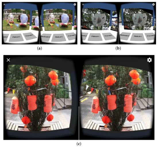 - Powell, W.; Powell, V.; Brown, P.; Cook, M.; Uddin, J. Getting around in google cardboard—Exploring navigation preferences with low cost mobile vr. In Proceedings of the 2016 IEEE 2nd Workshop on Everyday Virtual Reality (WEVR 2016), Greenville, SC, USA, 20–20 March 2016. [Google Scholar]