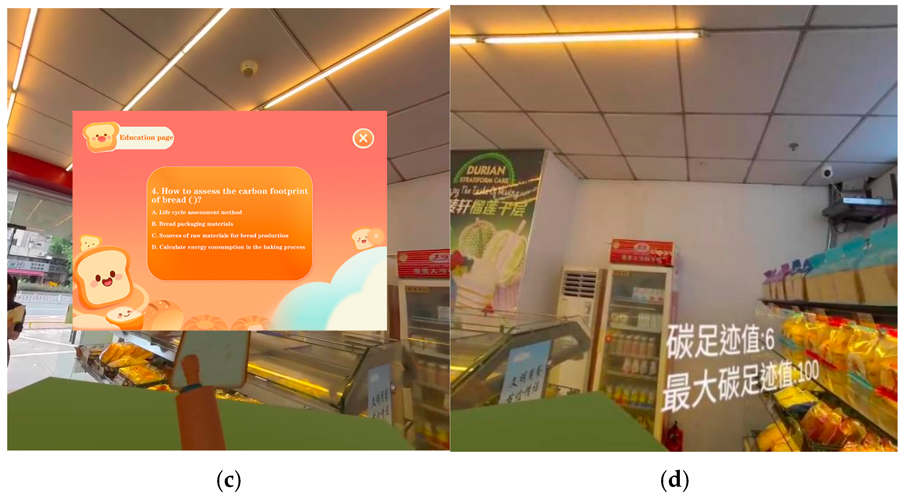 Figure 6) to engage with the game and complete corresponding levels. During formal testing, participants entered the game after viewing the instructions interface. Upon completing the game, participants undertook carbon footprint learning assessments.
