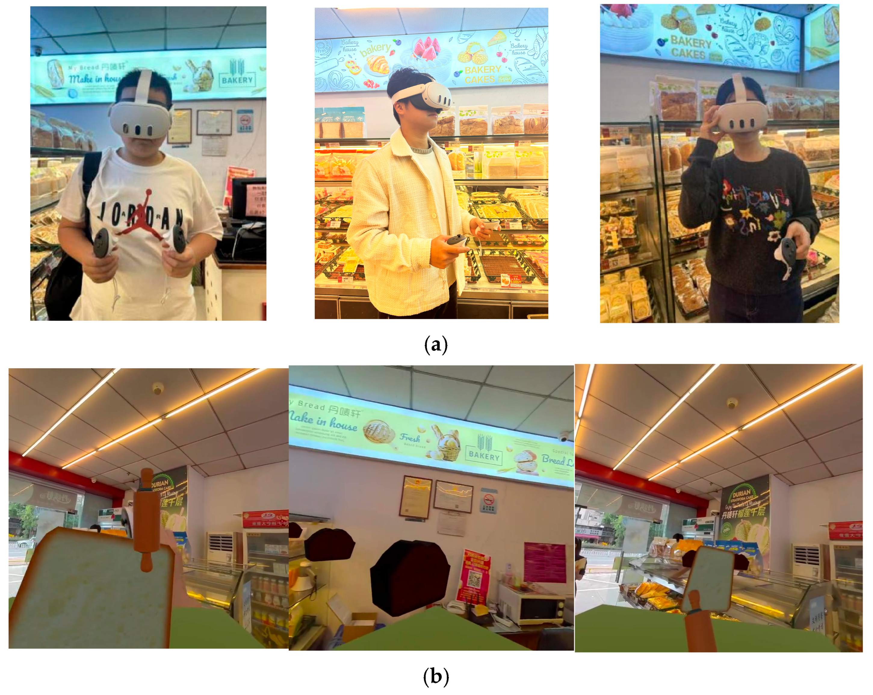 During the experimental process, participants were required to complete the MR game testing experience in sequence. Among these, 15 students had neither previously used VR devices nor engaged in interactive games like ‘Leftover Food’. Each participants wore VR equipment (